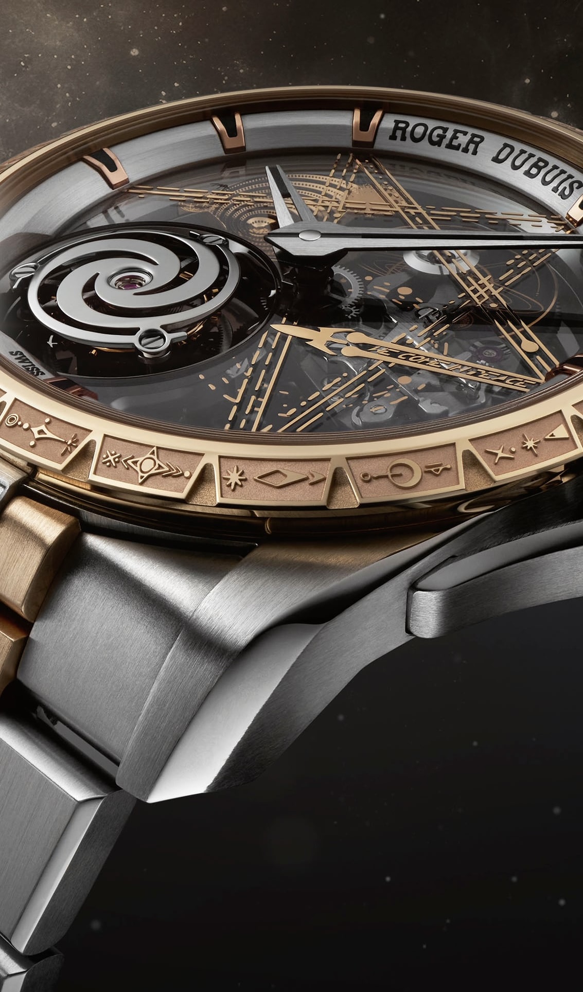Roger Dubuis продолжает свое творческое партнерство с тату-мастером Dr Woo в третьей главе их совместной серии в 2025 году: Excalibur Monotourbillon Dr Woo Episode III. После дебюта Episode I в 2021 году и Monobalancier Episode II в керамическом корпусе в 2023 году эта новая модель глубже погружается в вдохновленное космосом повествование, объединяя символический дизайн с техническим мастерством.