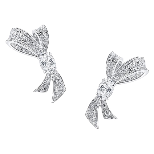 Элегантная пара серёг Tilda’s Bow с общим весом бриллиантов около 4,19 карата — воплощение нежности, блеска и неподвластной времени грации.