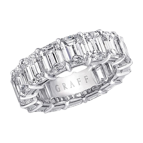 Общая масса бриллиантов составляет около 7,89 карата. Элегантное кольцо Classic Graff с бриллиантами изумрудной огранки — символ совершенства, любви и вечной элегантности.