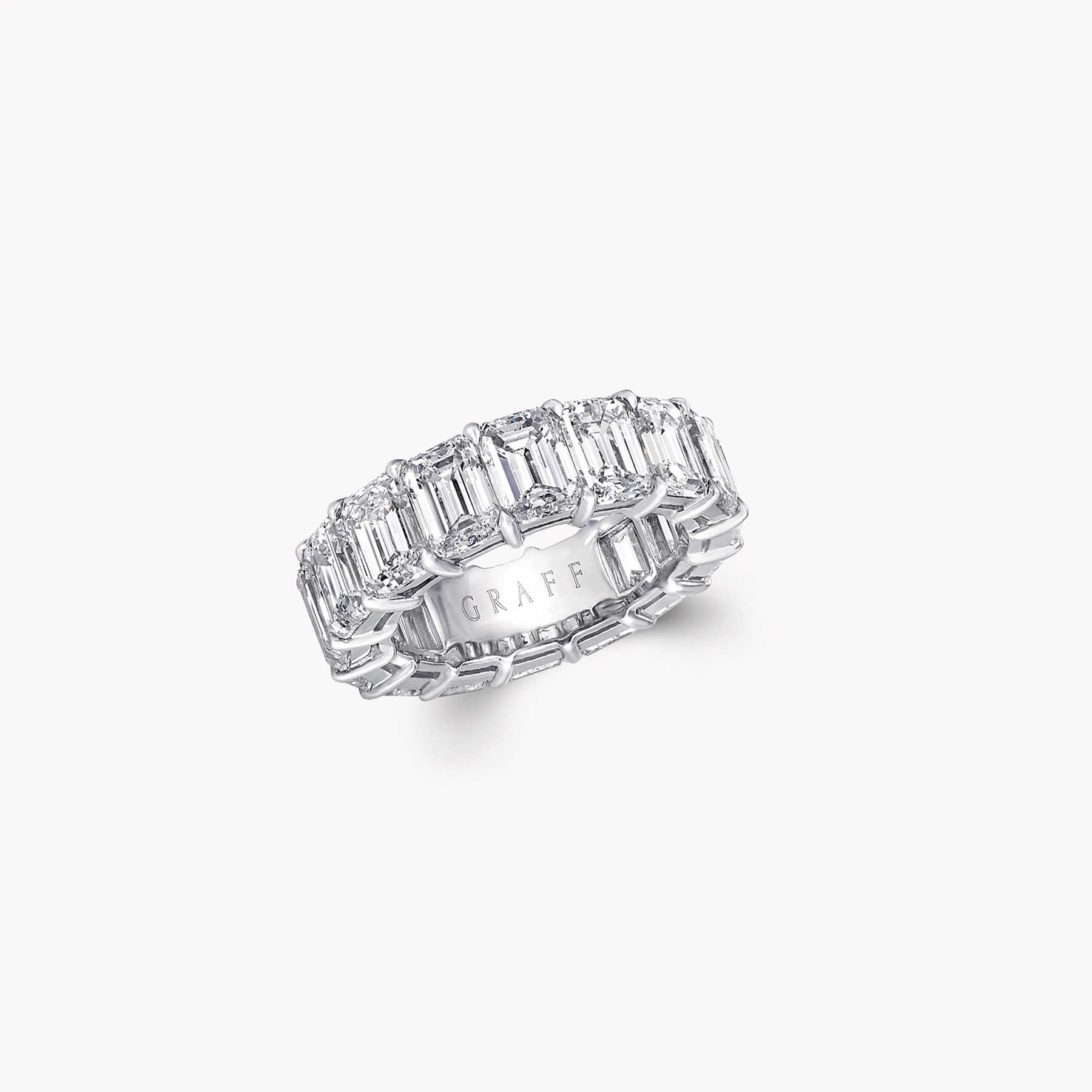 Изысканная альтернатива традиционному обручальному кольцу — платиновое кольцо Classic Graff с бриллиантами изумрудной огранки. Линейная геометрия ступенчатых граней подчёркивает архитектурную гармонию и чистоту формы, придавая украшению современное, но в то же время вневременное звучание.