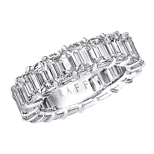 Общая масса бриллиантов составляет около 7,60 карата, каждый весом 0,40 карата. Эта элегантная модель Classic Graff с бриллиантами изумрудной огранки — воплощение вечной любви, мастерства и совершенной элегантности, неподвластной времени.