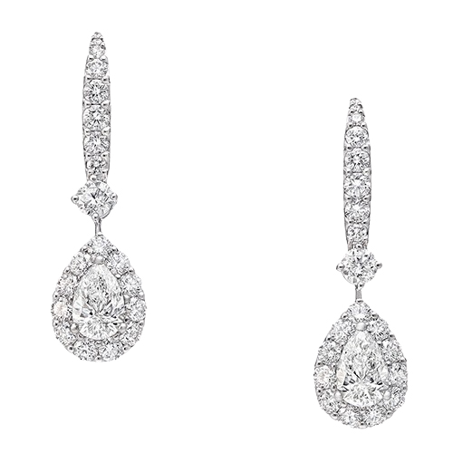 Элегантная пара серёг Graff Icon с грушевидными бриллиантами и ореолом pavé — общим весом около 3,37 карата, с двумя сертифицированными камнями по 0,70 карата — это воплощение непревзойдённого блеска и вечной элегантности.