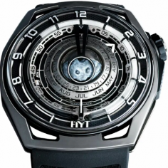 Багато годинникових компаній мріяли про створення годинників, що вказують час за допомогою рідини в механізмі і вдалося це тільки компанії HYT у 2012 році. Гідромеханічний годинник HYT H1 став першим витвором молодої компанії Hydro Mechanical Horologists. При першому погляді на годинник, перше, що впадає у вічі, так це прозора трубка з флуоресцентною рідиною яка виконує роль годинникової стрілки і надає механізму особливої чарівності. Рідина рухається система з двох гідравлічних поршнів за якими можна помилуватися на циферблаті. Одні з найважливіших моментів у розробці годинника компанії HYT, це розробка рідин, які відповідали б технічному завданню на створення годинника. Без складнощів унікального годинника не виходить і створити такий годинник їм вдалося!