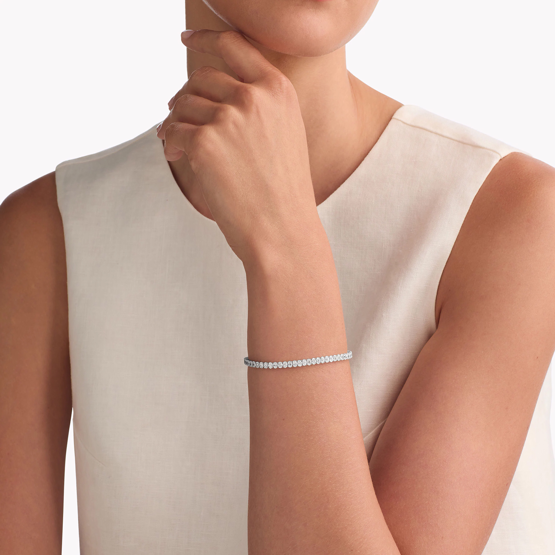 Оригінальний браслет з овальними діамантами у білому золоті – втілення витонченого, перевіреного часом дизайну. Кожна прикраса створюється вручну майстрами Graff, де кожен діамант обрамлений мінімалістичною оправою, що дозволяє світлу вільно грати в його гранях, створюючи сліпуче сяйво при кожному русі.