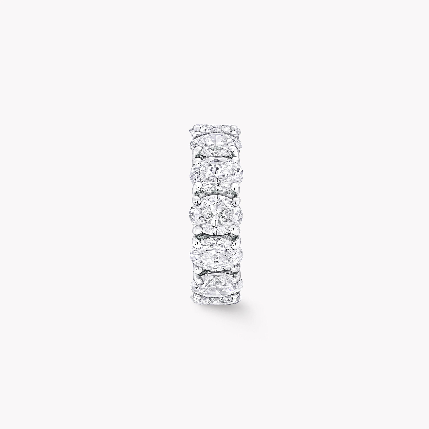 Діаманти овального огранювання ретельно закріплені в платині за допомогою витончених крапанів, що підкреслює їхню природну яскравість і вишукану форму. Майстерна робота майстрів перетворює кільце на безперервний потік світла, що символізує нескінченну відданість і любов.
