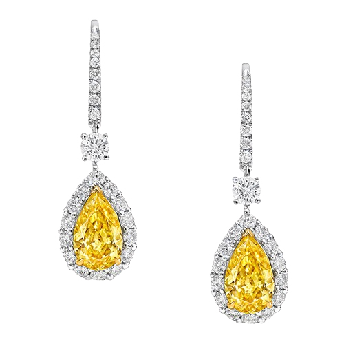 Яскрава та виразна пара сережок Icon з грушоподібними жовтими діамантами та білим паве загальною масою близько 3,41 карата, прикрашена двома сертифікованими діамантами Fancy Yellow вагою понад 1,00 карата кожен, – це втілення сонячної пишноти та вічної елегантності Graff.