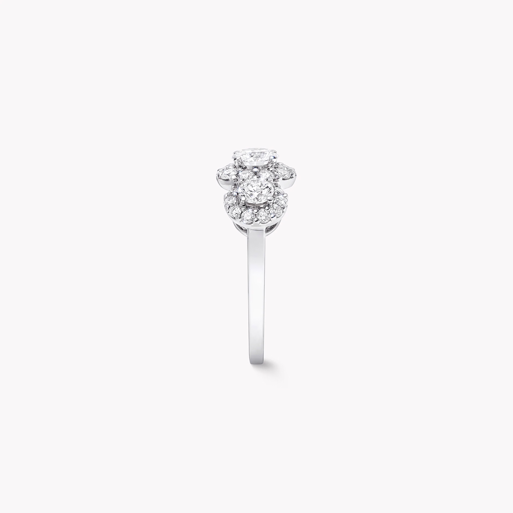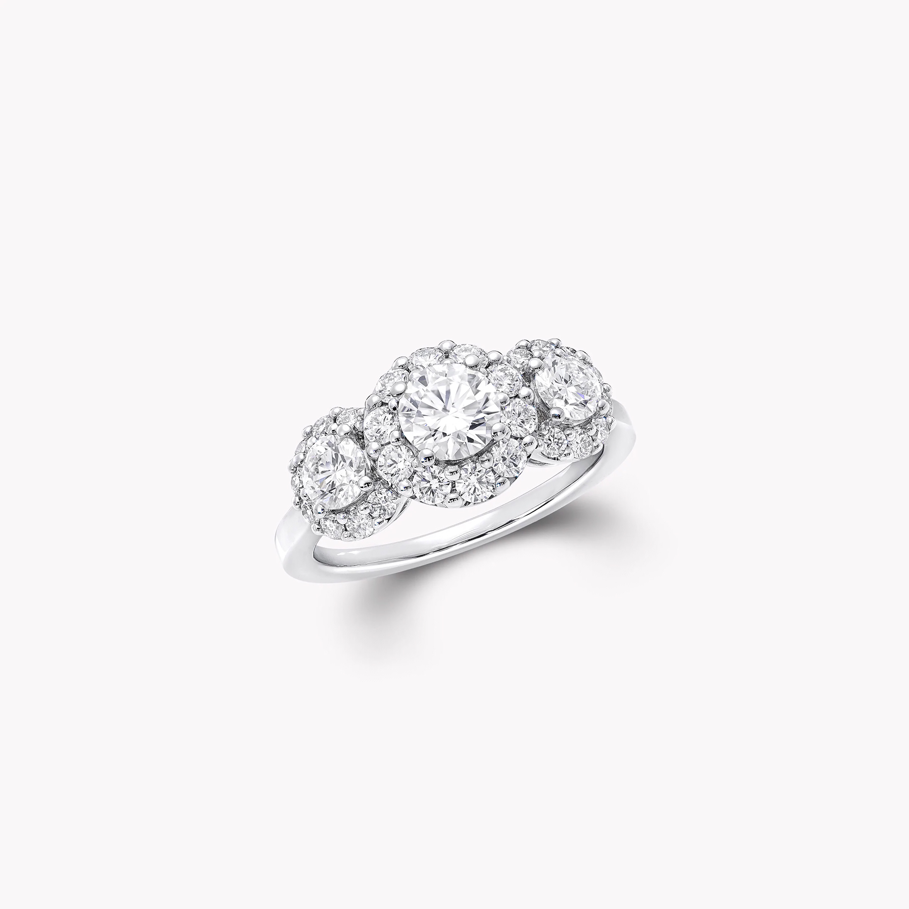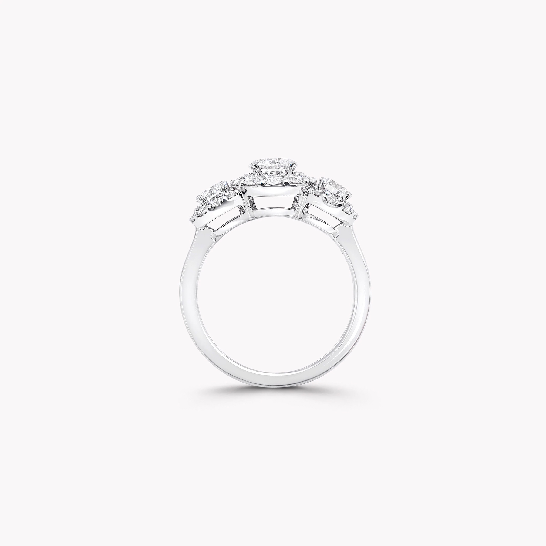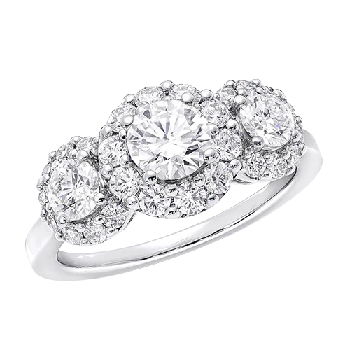 Кільце Icon з трьома діамантами – це витончене втілення класичної гармонії та сяйва. У центрі композиції сяє великий круглий діамант, граціозно відбитий у двох бокових каменях, формуючи досконалу тріаду світла та симетрії. Кожне з трьох сяючих чудес обрамлено витонченим ореолом з діамантів паве, а тонке багаторівневе кріплення посилює гру світла, розкриваючи внутрішній вогонь каміння з кожного боку.