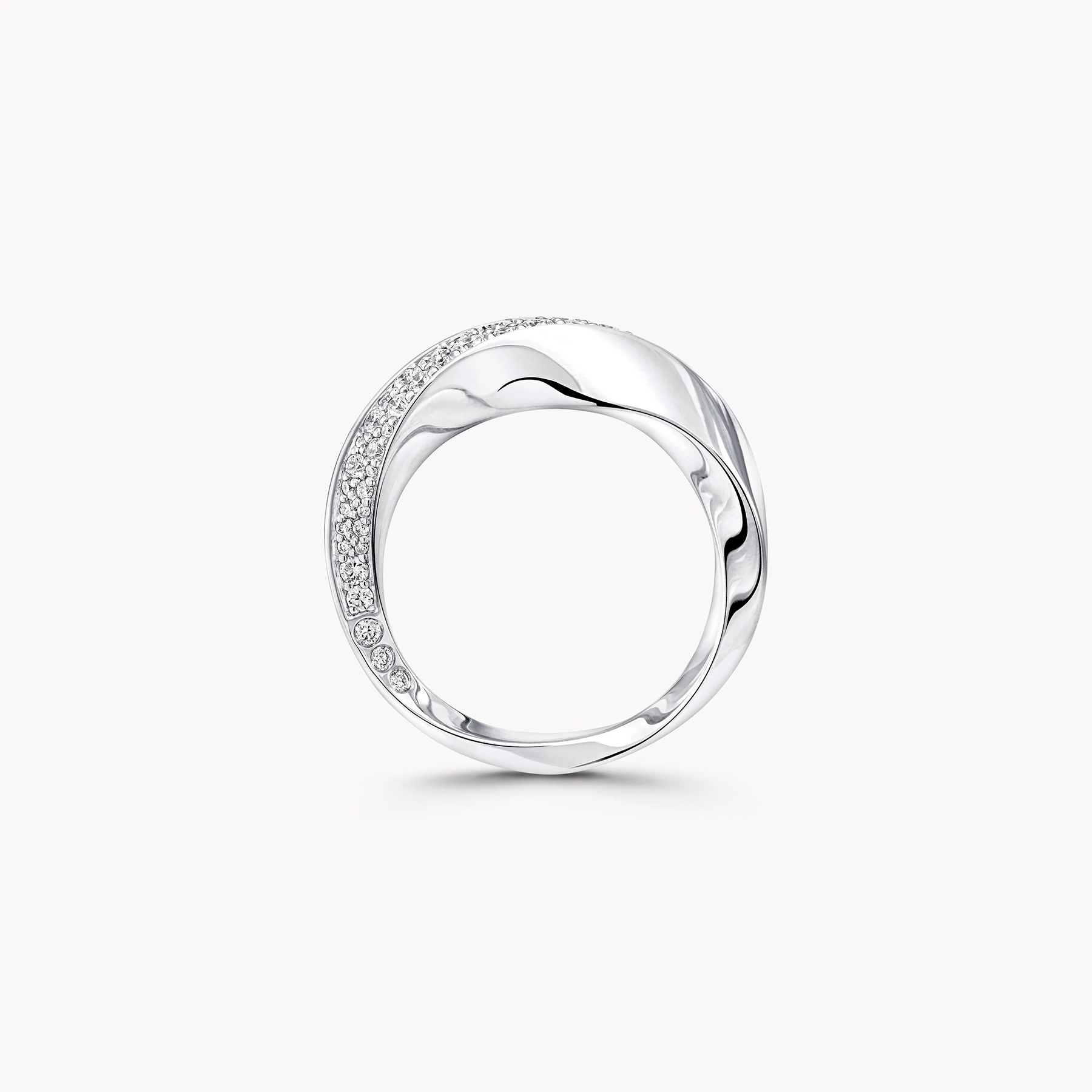 Символ вічності та нескінченного руху, кільце Spiral з білого золота витончено закручується навколо пальця, створюючи плавну спіраль світла та сяйва. Кожна ланка інкрустована діамантами круглого огранювання паві, майстерно закріпленими ювелірами Graff, щоб сформувати безперервне коло сліпучого блиску.